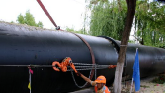 為了保證工程質量,在挖掘管溝時,首先要考慮回填時沙土是否能夠填充到球墨鑄鐵管的底部部位,挖掘完成后,將手動葫蘆懸掛在大型吊機的下部,再將鐵管懸掛到手動葫蘆上,通過調整手動葫蘆的高度,來使鐵管精準放入到管溝中,經過不斷的調整,多截斷的鐵管便會整齊的排列在一起。